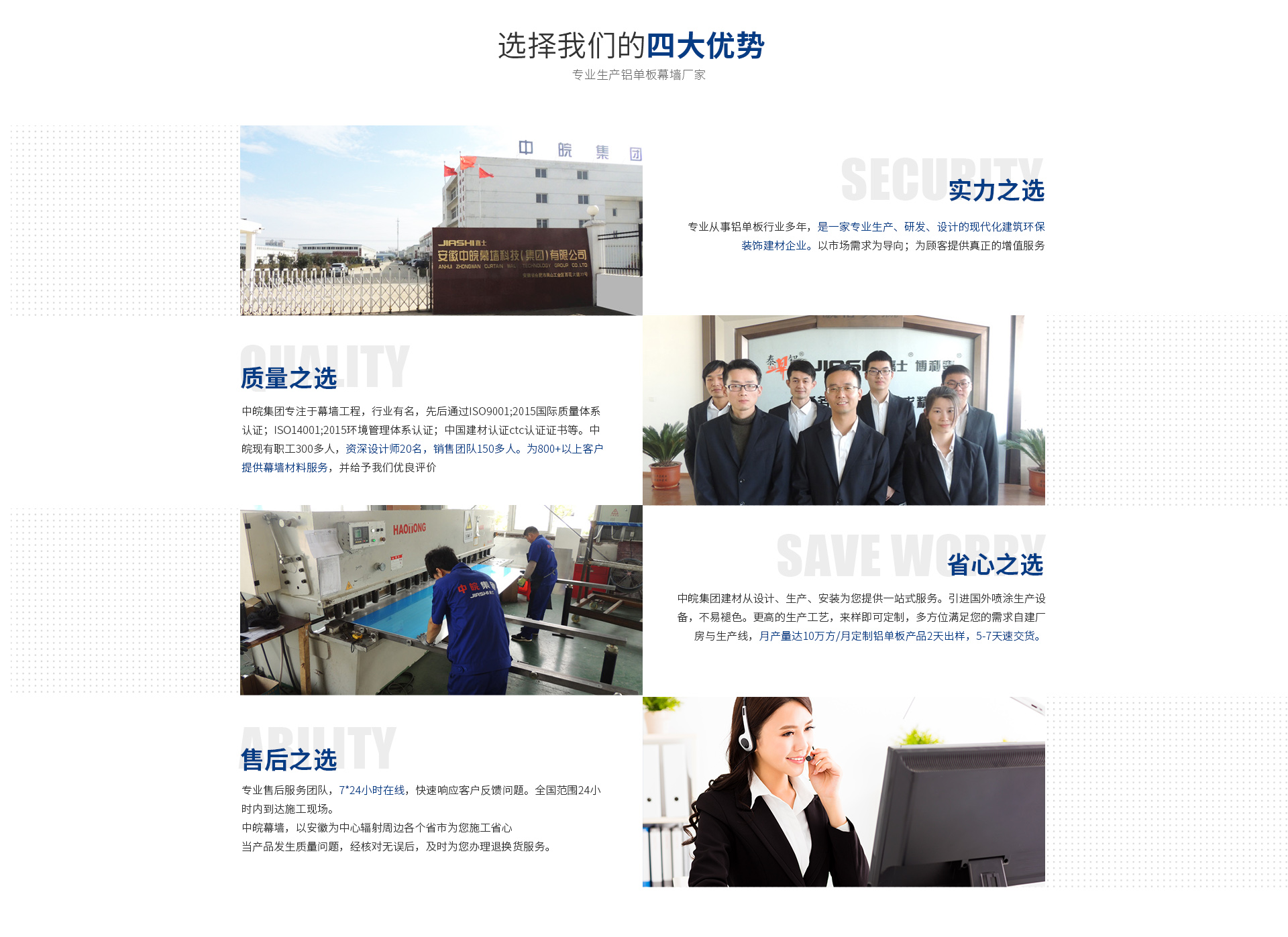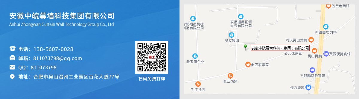 安徽中皖幕墻科技(集團(tuán))有限公司 安徽中皖集團(tuán)是一家幕墻鋁單板生產(chǎn)、研發(fā)、設(shè)計、銷售一體化的現(xiàn)代化建筑環(huán)保裝飾建材企業(yè)。 旗下控股公司: 安徽嘉士新型材料有限公司 安徽博利泰幕墻有限公司 安徽泰鋁裝飾建材有限公司 中皖旗下品牌通過ISO9001;2015國際質(zhì)量體系認(rèn)證和ISO14001;2015環(huán)境管理體系認(rèn)證,中國建材認(rèn)證ctc認(rèn)證的專業(yè)認(rèn)證書。并榮獲重合同守信用企業(yè);認(rèn)證證書;重質(zhì)量守信用企...